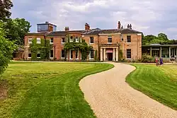 The Elcot Park estate was purchased by Anthony Bushby Bacon (1772 - 1827), the son of a wealthy Welsh industrialist, from Charles Dundas, 1st Baron Amesbury, a prominent landowner from nearby Barton Court. He built the house in 1817. The gardens of Elcot Park were laid out in an English landscape style, with the area around the mansion laid to lawns with clumps of trees, woodland walks and distant views over the Kennet valley. There also was a walled kitchen garden with a range of glasshouses, including four greenhouses for vines and peaches, and also a pine pit heated with hot water.[2] Elcot Park was well known in the nineteenth century for Bacon's implementation of hot water heating in the glasshouses.[3]
