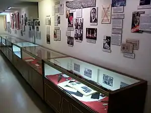 Also displayed in the library are Uniforms, Newspaper articles, and metals in cases across the room.