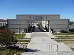 In 1985, a planning committee recommended the creation of a new college at UC San Diego focused on comparative cultural and historical studies to augment its four existing undergraduate colleges and their different general education foci.[2] The Academic Senate approved the proposal in May 1986 and James Lyon was appointed founding provost of Fifth College in March 1987. UCSD's colleges receive a numeric designation until a permanent name is later chosen. In fall 1988, Fifth College welcomed its inaugural class.[3] The college was named Eleanor Roosevelt College (ERC) in a dedication ceremony in 1995, at which First Lady Hillary Clinton delivered an address.[4][5][6] In 2003, ERC moved to its current location in a newly built college complex on the northwestern region of the university campus.[7]
