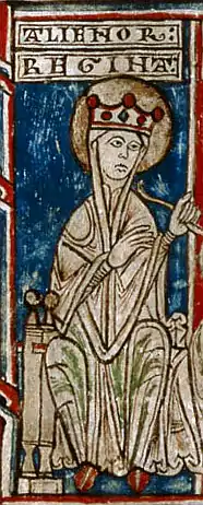 Eleanor of England (Spanish: Leonor; c. 1161[1] – 31 October 1214[2][3]), was Queen of Castile and Toledo[4] as wife of Alfonso VIII of Castile.[5][6] She was the sixth child and second daughter of Henry II, King of England, and Eleanor of Aquitaine.[7][8] She served as Regent of Castile during the minority of her son Henry I between the death of her spouse until her own death in 1214.[9]