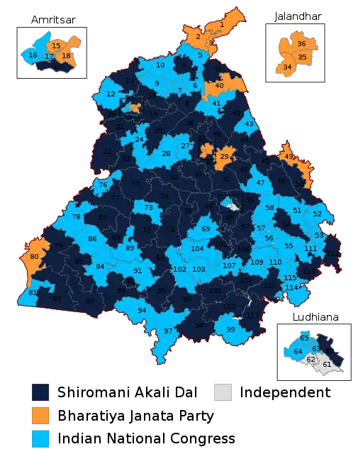 | Years | SAD | INC | CPI | BJP | IND | Others | Total |