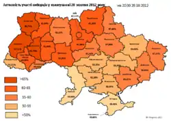 35. CEC:Turnout in Ukraine's parliamentary elections 57.99%, Kyiv Post (29 October 2012)