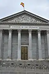 Carlism has been known for waging wars rather than for electoral efforts,[1] and the principal Carlist tool when striving for political power has always been a rifle, not a ballot paper.[2] When competing for parliamentary mandates the party calibrated its efforts as means of political mobilization and the way to maintain momentum before the next opportunity for a violent overthrow arises. This is how the Carlist contingent in the Cortes operated in the Isabelline period and during the Restoration era; usually reduced to a tiny group, only periodically it was growing to a sizeable yet still minoritarian parliamentary force. It was most numerous in the early 1870s, when 50 Carlist MPs made up 13% of the entire chamber;[3] in the later Alfonsine monarchy era they were reduced to 1-4% of all deputies. The Carlist strategy and position in the parliamentarian realm of the Second Spanish Republic was not very much different; the Carlists viewed the republican system as a transitory regime to be toppled one way or another.[4] They engaged in all three electoral campaigns to the Cortes, yet their efforts were formatted as means of political mobilization rather than as a path to power.[5]