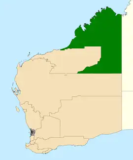 ![]() Location of Kimberley (dark green) in Western Australia | |||||||||||||||