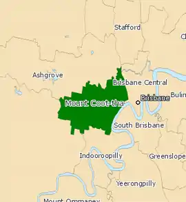 Mount Coot-tha was an electoral district in the Legislative Assembly of Queensland in the state of Queensland, Australia from 1950 to 2017.[1]
