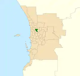 The seat was created at the 2007 redistribution from parts of Yokine and Perth, and has a long history in an earlier incarnation which existed from 1950 until 1989 as a reasonably safe Liberal Party seat which was held for 22 years by Ray O'Connor, who served as Premier in 1982–1983, although is now a marginal seat.[1] It falls within the Electoral region of East Metropolitan.