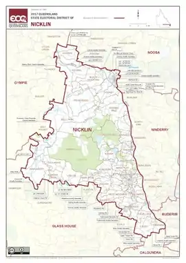 - "2017 Queensland state electoral district of Nicklin" (PDF). Electoral Commission of Queensland. 2017. Archived (PDF) from the original on 20 March 2018. Retrieved 16 May 2018.