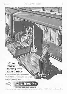 1948 advertisement for Exide-Ironclad batteries for electric platform trucks