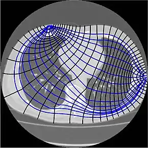 Absolute EIT approaches are targeted at digital reconstruction of static images, i.e. two-dimensional representations of the anatomy within the body part of interest. As mentioned above and unlike linear x-rays in Computed Tomography, electric currents travel three-dimensionally along the path of least resistivity (figure 1), which results in partial loss of the electric current applied (impedance transfer, e.g. due to blood flow through the transverse plane).[3][18][19] This is one of the reasons why image reconstruction in absolute EIT is so complex, since there is usually more than just one solution for image reconstruction of a three-dimensional area projected onto a two-dimensional plane.[4][18] Another difficulty is that given the number of electrodes and the measurement precision at each electrode, only objects bigger than a given size can be distinguished.[26][27] This explains the necessity of highly sophisticated mathematical algorithms that will address the inverse problem and its ill-posedness.