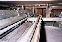 • Re-use of existing gas pipes when converting gas lighting installations to electric lighting. Insulated conductors were pulled through the pipes that had formerly supplied the gas lamps. Although used occasionally, this method risked insulation damage from sharp edges inside the pipe at each joint.