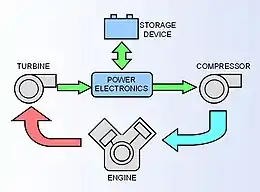 A turbocharger that can divert some of the exhaust gas to produce electricity (using the vehicle's alternator) is sometimes called a hybrid turbocharger.[12]