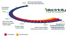 The distribution network had originated as NORWEB, the state-owned North West Electricity Board from 1948 to 1990.