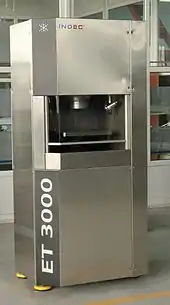 Electrochemical machining (ECM) is a method of removing metal by an electrochemical process. It is normally used for mass production and is used for working extremely hard materials or materials that are difficult to machine using conventional methods.[1] Its use is limited to electrically conductive materials. ECM can cut small or odd-shaped angles, intricate contours or cavities in hard and exotic metals, such as titanium aluminides, Inconel, Waspaloy, and high nickel, cobalt, and rhenium alloys.[2] Both external and internal geometries can be machined.