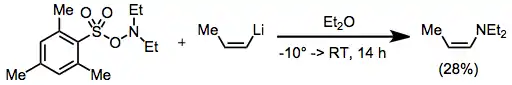 Electrophilic aminating reagents rely on the presence of an electron-withdrawing functional group attached to nitrogen. A variety of hydroxylamine derivatives have been used for this purpose. Sulfonylhydroxylamines are able to aminate a wide array of carbanions.[8]
