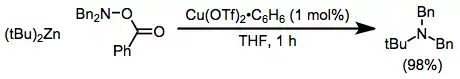 - Berman, Ashley M.; Johnson, Jeffrey S. (2006-01-01). "Copper-Catalyzed Electrophilic Amination of Organozinc Nucleophiles: Documentation of O-Benzoyl Hydroxylamines as Broadly Useful R2N(+) and RHN(+) Synthons". The Journal of Organic Chemistry. 71 (1): 219–224. doi:10.1021/jo051999h. ISSN 0022-3263. PMID 16388639.