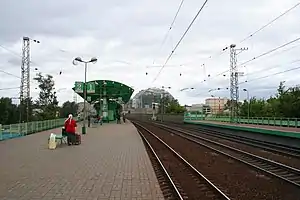 Elektrozavodskaya is a Moscow Railway station on the Kazansky and Ryazansky suburban railway lines in Moscow, Russia. It is located on the Basmanny-Sokolinaya Gora district border (Central and Eastern administrative okrugs respectively), 3.5 kilometres (2.2 mi) from Moscow Kazanskaya railway station.