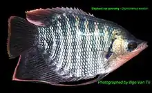 The elephant ear gourami (Osphronemus exodon) is a large species of gourami native to the Mekong in Thailand, Laos, and Cambodia.
