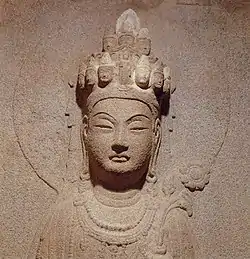 The Thousand-armed Avalokiteśvara with eleven heads is the most popular form. The number of heads increases to twenty five, and sometimes the crown bears upto five hundred heads.[11]