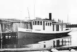Elfin was built at Pontiac, on the north side of Sand Point, on Lake Washington in 1891. The vessel was 54.5 feet (16.61 m)[1] ( or 60 feet (18.29 m))[2]) long, with a beam of 13.5 feet (4.11 m). Power was provided by a two-cylinder compound steam engine. The builder was Edward.F. Lee. The first owner was Capt. Frank Curtis, whose prior vessel, the Squak, had been sunk in a storm during Christmas, 1890.[2] The vessel was launched in April 1891. Other steamers on the lake, Kirkland, and Mary Kraft brought spectators to the launching.[2]