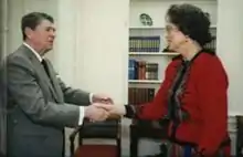 ![]() President Ronald Reagan with Ambassador Elinor G. Constable (1987) | |