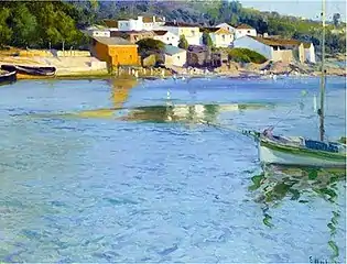 He continued to travel however, to France, Italy, Buenos Aires and Brussels, where he participated in the International Exposition, winning the Silver Medal.[2] In 1915, he travelled to the United States to promote himself at the Panama–Pacific International Exposition, receiving honorable mention, and won the Grand Prize at an exhibition in San Diego.[1] He then settled briefly in New York, where he displayed his paintings of Mallorca and Cadaqués, a village where he had spent his summers since 1886.