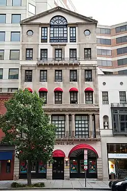 Built in 1929, the former Elizabeth Arden beauty salon is an example of Georgian Revival architecture, and the city's only known design of architect Mott B. Schmidt. The Elizabeth Arden Building was listed on the National Register of Historic Places in 2003. It was renovated for the Tiny Jewel Box store, in 1996.[3]