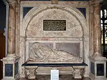 Elizabeth Bacon first married Sir Robert Doyley of Chiselhampton, Oxfordshire, 'a member of a prominent land-owning family' and a member of parliament for Bossiney, Cornwall, in 1572.[4][5] He was knighted in 1576.[6] While serving as a Justice of the Peace at the Oxford assizes of 4–7 July 1577, Doyley and others were, according to John Stowe,[7] infected with a 'strange sickness', whereof the jurors, including 'Sir Robert de Olie', died.[8] Doyley made his last will on 21 July, and was buried on 29 July at Hambleden. In his will, he left several properties to his widow, Elizabeth, according to Harley likely making her 'an independently wealthy woman'. There were no children of the marriage.[4][5]