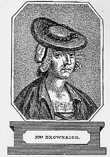 Elizabeth Brownrigg (1720 – 14 September 1767)[1] was an 18th-century English murderer. Her victim, Mary Clifford, was one of her domestic servants, who died from cumulative injuries and associated infected wounds. As a result of witness testimony and medical evidence at her trial, Brownrigg was hanged at Tyburn on 14 September 1767.