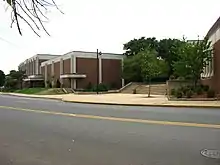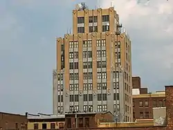 Midtown, also occasionally known as Uptown, is the main commercial district and a historic section as well. It includes the First Presbyterian Church[27] and St. John's Episcopal Church, and its St. John's Episcopal Churchyard. The First Presbyterian Church was a battleground for the American Revolution. Located here are also the 1931 Art Deco Hersh Tower,[45] the Thomas Jefferson Arts Academy, and the Ritz Theatre which has been operating since 1926. Midtown/Uptown includes the area once known as "Brittanville" which contained many English type gardens.