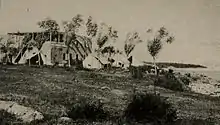 Ussher notes, however, that "many of the Turkish soldiers are averse to this butchery", adding that "the Vali has promised plunder and glory to the lawless Kurds, who are nothing loath to do his will."[30] In the same entry, Ussher describes how forty women and children who were "dying or wounded from Turkish bullets" had been brought to their hospital to be cared for.[30] In the meantime, Ussher describes how the Varak Armenian monastery, a refuge for some 2,000 people, was burnt and destroyed by the Turkish authorities.[31]