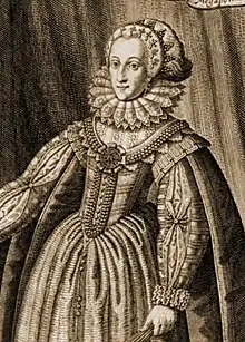 Elizabeth was the eldest daughter of Landgrave Maurice of Hesse-Kassel (1572-1632) from his marriage to Agnes (1578-1602), a daughter Count John George of Solms-Laubach. Her godmother was Queen Elizabeth I of England, who was represented on this occasion by the Earl of Lincoln. The christening of the Princess was one of the most elaborate ceremonies at the court in Kassel, including "four days of lavish games, tournaments, and fireworks".[1] The last knight games in Europe were held on this occasion. The engraver and historian Wilhelm Dilich made a documentary about the event in 1598-1601. That volume is now in the City of Kassel Museum.[2] A second manuscript about the celebrations, "compiled and executed by an unknown hand", is held by the Bavarian State Library.[1]