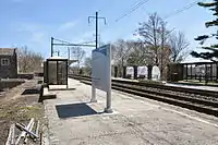 The Elizabethtown station is located on South Wilson Avenue, off of Pennsylvania Route 241 (West High Street). In addition to being used by passengers originating from Elizabethtown and surrounding Lancaster County, residents of nearby Dauphin and Lebanon counties utilize the Elizabethtown station as well.[3] It sees twenty-six arrivals by the Keystone Service on weekdays, thirteen from both Harrisburg and New York Penn Station, and seven from each on weekends.[4] The Pennsylvanian arrives once daily from both New York and Pittsburgh Union Station.[4] The station is 18 miles (29 km) east of Harrisburg, 86 miles (138 km) west of 30th Street Station in Philadelphia, and 179 miles (288 km) from New York.[4] The station was the 7th busiest in Pennsylvania with an annual ridership of 22,232 passengers in fiscal year 2021, a decrease of 52.2 percent from the previous year.[5][6]