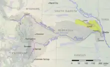 The Elkhorn River is a river in northeastern Nebraska, United States,[1] that originates in the eastern Sandhills and is one of the largest tributaries of the Platte River, flowing 290 miles (470 km)[3] and joining the Platte just southwest of Omaha, approximately 1 mile (1.6 km) south and 3 miles (4.8 km) west of Gretna.