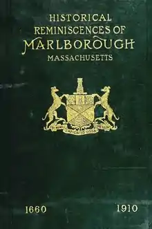 This article incorporates text from this source, which is in the public domain. - Bigelow, Ella A. (1910). Historical Reminiscences of the Early Times in Marlborough, Massachusetts, and Prominent Events from 1860 to 1910: Including Brief Allusions to Many Individuals, and an Account of the Celebration of the Two Hundred and Fiftieth Anniversary of the Incorporation of the Town. Times Publishing Company. Retrieved 16 July 2022.