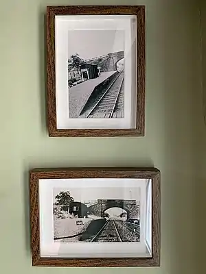 ![]() Ellerdine Halt platform photographs. They show how the station looked whilst operational. The top photograph is dated 30/05/1961 and the bottom circa 1964. | |