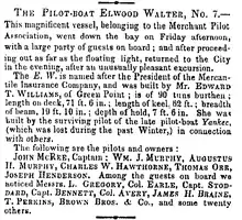 - "The Pilot-Boat Elwood Walter, No. 7". The New York Times. New York, New York. 16 May 1853. p. 3. Retrieved March 29, 2021.
