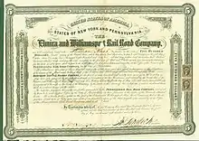 Bond of the Elmira and Williamsport Rail Road Company, issued 1 may 1863