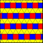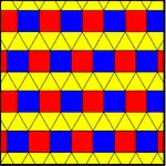 There is one uniform colorings of an elongated triangular tiling. Two 2-uniform colorings have a single vertex figure, 11123, with two colors of squares, but are not 1-uniform, repeated either by reflection or glide reflection, or in general each row of squares can be shifted around independently. The 2-uniform tilings are also called Archimedean colorings. There are infinite variations of these Archimedean colorings by arbitrary shifts in the square row colorings.