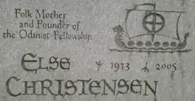 Else Christensen (1913–2005)[lower-alpha 1] was a Danish proponent of the modern Pagan new religious movement of Heathenry. She established a Heathen organisation known as the Odinist Fellowship in the United States, where she lived for much of her life. A Third Positionist ideologue, she espoused the establishment of an anarcho-syndicalist society composed of racially Aryan communities.
