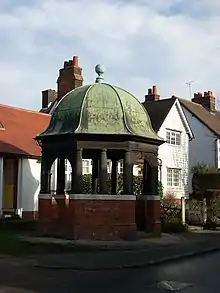 Notable features include Elsenham Hall, the home of Sir Walter Gilbey, St Mary's Church, formerly known as the Little Norman Church on the Hill, and The Pump, which stands in the village centre and was built by Sir Walter Gilbey in memory of his wife. A horse, Golden Miller, who won the Cheltenham Gold Cup five times between 1932 and 1936 and the Grand National in 1934 is buried at Elsenham Stud.[3]