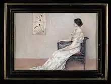 Born in Waco, Texas, Lowden spent her youth there,[1] studying with Eleanor T. Wragg at Baylor University,[2] before moving to New York City, where she undertook further lessons with Lucia Fairchild Fuller and Elsie Dodge Pattee. Her works were exhibited in that city, in Atlanta, and in Washington, D.C. as well as in her native state, where she was included in the Texas Centennial Exposition of 1936;[1][3] she also showed her work at a variety of other venues, presenting a portrait at the Panama–Pacific International Exposition in 1915.[4] Known particularly for portraiture, she depicted members of such prominent Houston families as the Blaffers and Hobbys, as well as noted novelist Ellen Glasgow. Lowdon also produced a variety of interior and genre scenes. She died in Fort Worth,[1] and is buried in Abilene, in the Abilene Municipal Cemetery.[5]