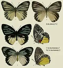 - Moore, F., [1858]. in Moore, F. & Horsfield, T. Catalogue of the Lepidopterous Insects in the Museum of the Honourable East India Company 1 i-v, 1-14, 17-278, i-iv, 1-11; pls 1-12, 1a-6a. London