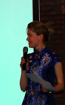 Elyse Ribbons (October 27, 1980 - ) is an American entrepreneur, writer, businesswoman, and playwright who lives and works in Beijing. Known in China by her Chinese name Liu Suying (柳素英)[1] who spends time on both corporate work media work (via columns, a nationally syndicated radio show- China Radio International's Laowai Kandian, regular news media appearances and filming movies). She is currently the CEO and Founder of GeiLi Giving, winner of several awards in the startup[2] and social entrepreneurial[3] space. She has authored several articles for Forbes magazine[4] on business, culture, and life in China.