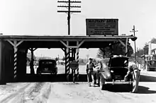 When the federal government evaluated sites for the Manhattan Project facilities that ultimately were sited at Oak Ridge, the Oak Ridge site was described in internal memos as "near Elza."[3] During World War II, Elza was the site of one of the security gates on the borders of the then-closed city of Oak Ridge. Located on the road from Clinton to Oak Ridge, the Elza gate was "the busiest and most public" of Oak Ridge's entrance gates.[1] When the Oak Ridge townsite was first opened to outsiders in 1949, the gate-opening ceremony was conducted at the Elza gate.[1]
