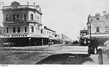 - In 1877 he built a three-storeyed building at "Muirhead's Corner" of King William and Hindley streets,[2] for a time tenanted by the "Monster Clothing Palace". Cohen opened a restaurant, "Shades", in its large cellar.[3]