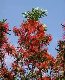 The prominent position and striking colour of many species within the subtribe both in Australia and South America strongly suggest they are adapted to pollination by birds, and have been for over 60 million years.[4] In Argentine Patagonia, E. coccineum is pollinated by hummingbirds (green-backed firecrown) and insects (tangle-veined flies and sweat bees).[5]