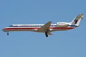 During September 1999, the slightly smaller ERJ140 was introduced; it performing its first flight on 27 June 2000, and entering commercial service in July 2001.[30] Envoy Air, the regional jet subsidiary of American Airlines flying as American Eagle, operated the majority of the ERJ140s built, including the first to be delivered (N800AE) However, Envoy Air opted to withdraw all of their ERJ140 fleet in mid-2020. By early 2005, 74 ERJ140s had been delivered; while this model has been marketed as ERJ140, its designation on the company's internal documents and on FAA certification is EMB 135KL. In March 2007, ExpressJet entered into a short-term agreement to operate some regional routes for JetBlue Airways using its ERJ145 aircraft.