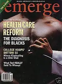 Emerge was a monthly news magazine that was published from 1989[1][2] to 2000. Its primary focus was on issues of interest to African Americans. In 2000, Time said Emerge was "the nation's best black newsmagazine for the past seven years"[3] the St. Louis Post-Dispatch described it as "the premier source for intellectual discussion on issues affecting African-Americans",[4] and the New York Amsterdam News wrote that "it had no rival for cutting edge news for and about the black community".[5] The magazine was headquartered in Washington, D.C.[6]