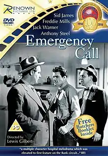 Emergency Call is a 1952 British drama film directed by Lewis Gilbert and stars Jack Warner in a familiar role playing a policeman, Anthony Steel, Joy Shelton and Sid James as a dubious boxing promoter.[2][3]