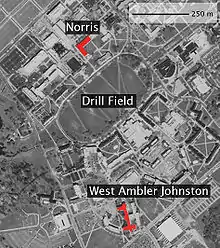 Some universities have invested in expensive methods to help protect their campuses and students from natural disasters such as flooding. After the devastating Hocking River flood of 1968, Ohio University funded a project to reroute a 5-mile strip of river that would have run through the present day campus. Constructed by the Army Corps of Engineers, the new river channel has been estimated to carry three times what the old river could have, reduced the chances of flooding by 86%, and has prevented an estimated $800,000 in annual flood damage. The project allowed the university to expand into the river's former flood plain without having to pay for damages every year and reduced putting students at risk.[20] At a cost of almost $11 million in 1969 this is an expensive choice in mitigation for a university to fund, but it has saved approximately $48 million in flood damage since its construction.[20] Ohio University recognizes its history of flood related disasters and outlines its evolution in Then & Now a video documenting the history of flooding on the Athens campus.